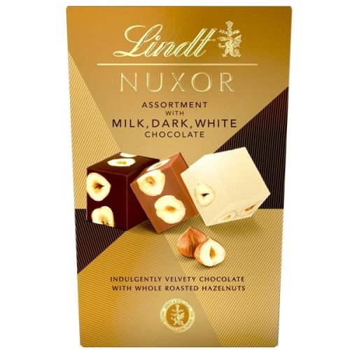 • Směs Lindt Nuxor kombinuje tři lahodné druhy v jednom balení: bílou čokoládu, mléčnou Gianduja a hořkosladkou čokoládu Gianduja