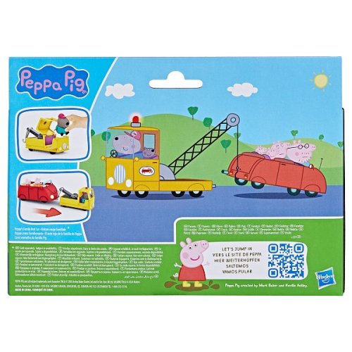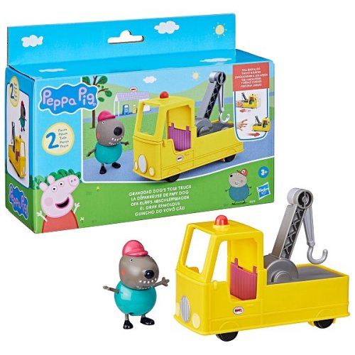 Zde je set Prasátko Peppa Tažný vůz Dědy psa! Stačí vytáhnout vůz dozadu a pak ho pustit, aby se rozjel vpřed! Děti mohou ovládat hák, připojit ho k dalšímu vozidlu ze série Prasátko Peppa a táhnout auto, kamkoliv chtějí!