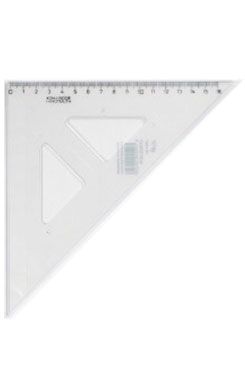 Průhledné trojúhelníkové pravítko s ryskou vhodné do hodin matematiky a geometrie. Délka 16 x 16 x 25 cm.