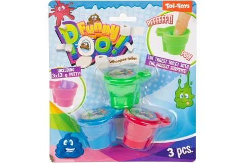 Prdící hmota v mini balení s motivem záchodu. v Balení 3 kusy různých barev. Materiál plast. Baleno na kartě. Rozměry balení 16,5x15x3 cm. Rozměry 1 slizu 5x3,5x3 cm. Věk 3+