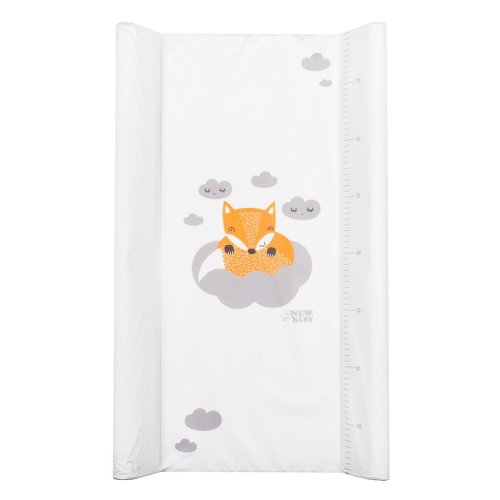 Praktický tvarovaný přebalovací nástavec s moderním dizajnem New Baby Liška z nepromokavého, plastového materiálu s obrázkem lišky a obláčků. Produkt české značky. Nástavec je vyplněn polyesterem a má vyvýšené boční strany. Nástavec má spodní tvrdou desku, lze ho přišroubovat na postýlku nebo umístit na přebalovací stojan. Je vyroben z nejkvalitnější certifikované fólie, která neobsahuje žádné škodlivé látky a je citlivá k nejjemnější dětské pokožce. Rozměr: cca 50x80 cm, tloušťka cca 2,5 cm, výška hran 8,5 cm.