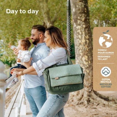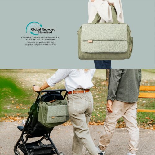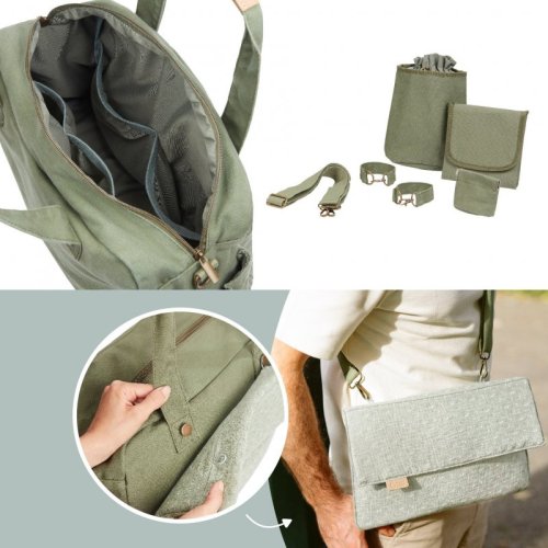 • příslušenství: přebalovací podložka, pouzdro na dudlík, izolovaná kapsa na láhev, pásky na kočárek, ramenní popruhy a odnímatelné pouzdro