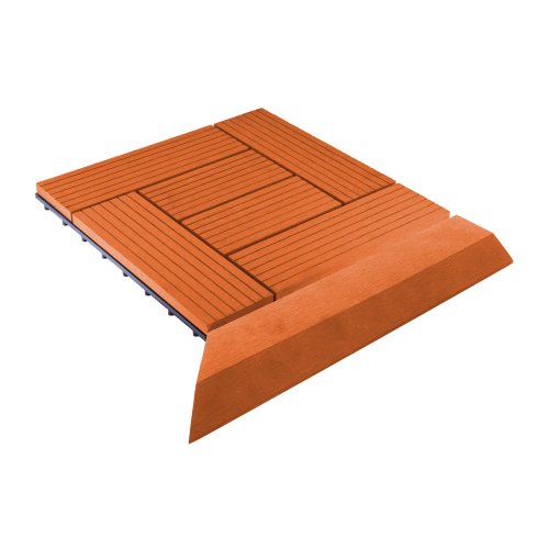 Rohová levá přechodová lišta v barvě třešeň s rozměry 38,5 x 7,5 cm poskytuje estetický dojem a bezpečnost při užívání podlahy nebo terasy.