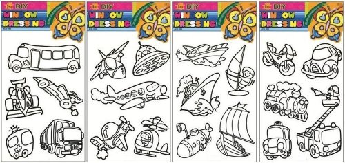 Předlohy na malování na sklo s vyvýšenou konturou ADHÉZNÍ FÓLIE ELEKTROSTATICKY PŘILNE K POVRCHU! Vybarvěte a po uschnutí umístěte na čisté, případně navlhčené sklo, zrcadlo, apod... Můžete vybarvit: barvičkami na sklo, fixami, vodovými barvam,i apod.