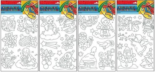 Předlohy na malování na sklo s vyvýšenou konturou ADHÉZNÍ FÓLIE ELEKTROSTATICKY PŘILNE K POVRCHU! Vybarvěte a po uschnutí umístěte na čisté, případně navlhčené sklo, zrcadlo, apod... Můžete vybarvit: barvičkami na sklo, fixami, vodovými barvam,i apod.