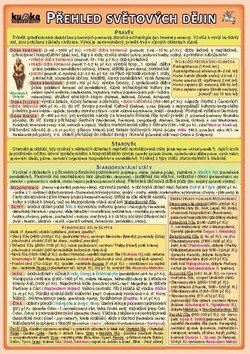 Světové dějiny od pravěku až po současnost vhodné pro studenty základních i středních škol. Přehled mimo jiné obsahuje všechny důležité historické události, periodizace významných revolucí, 23 historických mapek a erbů.