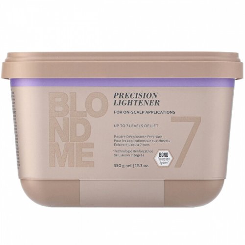 Všestranný barvicí a pečující systém s integrovanou technologií Dual Bond vám umožní zvládnout jakoukoliv blond výzvu a vytvářet ty nejúžasnější blond styly. Integrovaná technologie Dual Bond ve všech BLONDME barvicích pomáhá omezovat poškození na všech úrovních. Chrání vazby během chemických procesů a pomáhá vytvářet nové vazby v rámci speciální péče v salonu i doma. Duální bond systém přináší maximální jistotu při barvení a zesvětlování. Zesvětlovač 7 je vhodný pro precizní odbarvení odrostů. Nová receptura Swell Control omezuje bobtnání a umožňuje jedinečnou preciznost pro čistší barvicí výsledky bez rušivých linií mezi jednotlivými barvami. Integrovaný komplex Temperature Balancing přináší chladivý efekt během doby působení a integrovaná technologie Anti Metal Bond Protection chrání vlasové vlákno během doby působení pro omezení lámání vlasů.