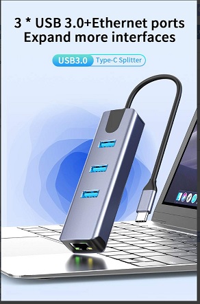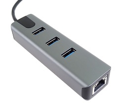 Převodník, který umožní připojit Váš počítač s portem USB typu C do internetu nebo k lokální síti pomocí kabelu s RJ45 (Gigabit) a navíc umožňuje zapojit tři USB3.2 (5 Gbps) periferie jako USB disk, tiskárnu, klávesnici a myš