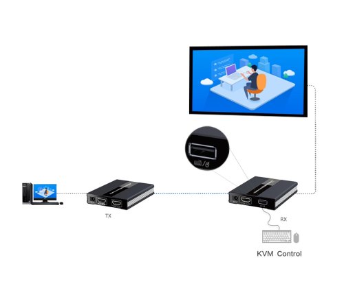 PremiumCord HDMI KVM extender s USB na 60m přes jeden kabel Cat5/6, bez zpoždění. Zařízení umožňuje po jednom síťovém kabelu bez zpoždění přenést HDMI FULL HD 1080p signál a USB až na vzdálenost 60m.