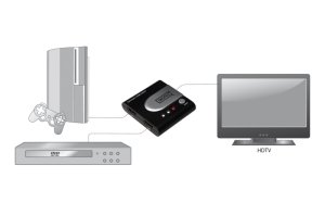 2 HDMI zařízení sdílejí 1 HDMI zařízení (obrazovku). Výběr zařízení je buď automaticky nebo tlačítkem.