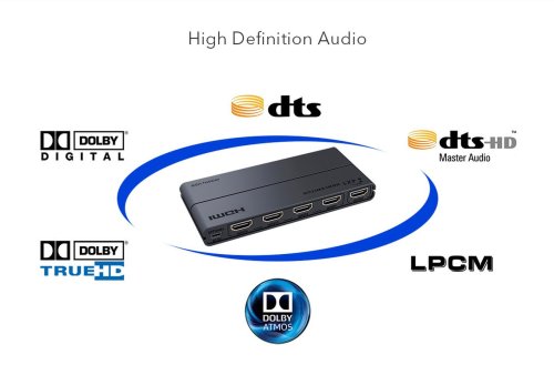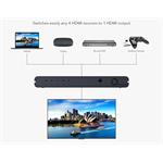 4 HDMI zařízení sdílí 1 HDMI výstupní zařízení (obrazovku). Výběr zařízení tlačítkem nebo dálkovým ovládáním.