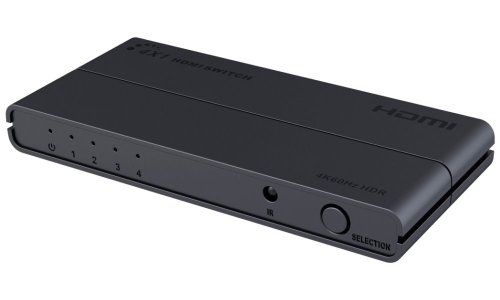 PremiumCord HDMI switch 4:1 s podporou rozlišení 4Kx2K@60Hz, 1080P, HDR, s ovládáním tlačítkem a dálkovým ovladačem