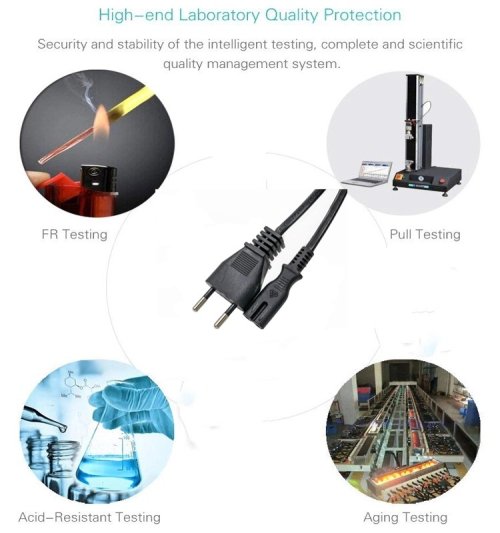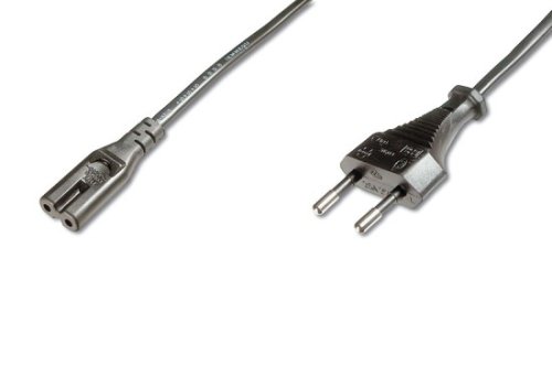 Napájecí kabel v černém provedení pro napájecí adaptér. Dvoužilový kabel je zakončený koncem v podobě ležaté osmičky.