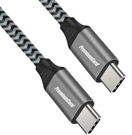 PremiumCord Kabel USB-C M/M, 100W 20V/5A 480Mbps bavlněný oplet, 2m, měděný vnitřní vodič AWG30 + AWG22