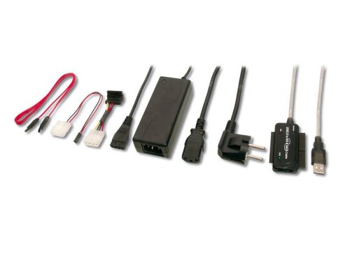 Kabel podporuje IDE a SATA zařízení, je kompatibilní s pevnými disky 2,5" i 3,5". USB zajišťuje přenosovou rychlost až 480 MB/s a umožňuje připojit jakékoliv IDE zařízení. Součásti sady je napájecí adaptér s kabelem, redukce napájení molex na SATA, datový SATA kabel a napájecí kabel.