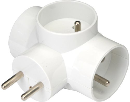 Roztrojka 230V - bílá - 250V, celkem: 16A max. - baleno po 1ks - závěs s EAN kodem - 1x kulatá zástrčka - 3x kulatá zásuvka
