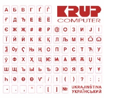 Popis produktu: Ukrajinská přelepka na klávesnici - bílá - Červená barva písma a průhledné pozadí přelepů - Přelepka vhodná na nalepení na světlou klávesnici s černým písmem - Azbuka s kompletní sadou …