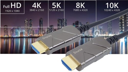 Profesionální optický HDMI kabel pro přenos signálu na dlouhé vzdálenosti bez ztráty kvality.