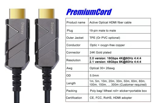 Tento 15metrový optický HDMI 2.1 Ultra High Speed kabel představuje špičkové řešení pro propojení audio/video zařízení na velké vzdálenosti. Díky využití čtyř optických vláken OM3 a 7 vodičů zajišťuje vynikající přenos signálu bez ztrát i při délce 15 metrů, což je u běžných metalických kabelů prakticky nemožné.