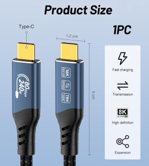 PremiumCord USB4™ Version2.0 80Gbps 16K@60Hz 240W Thunderbolt 3 a 4 kabel 1,2m Tento kabel USB4™ Version2.0 nabízí extrémně vysokou přenosovou rychlost až 80 Gbit/s, takže je ideální pro datově náročné aplikace. Přeneste videa ve vysokém rozlišení až 16K na monitory a televizory, vychutnejte si ostrý obraz a vynikající zvuk. Umožňuje napájet nebo nabíjet až do výkonu 240W.