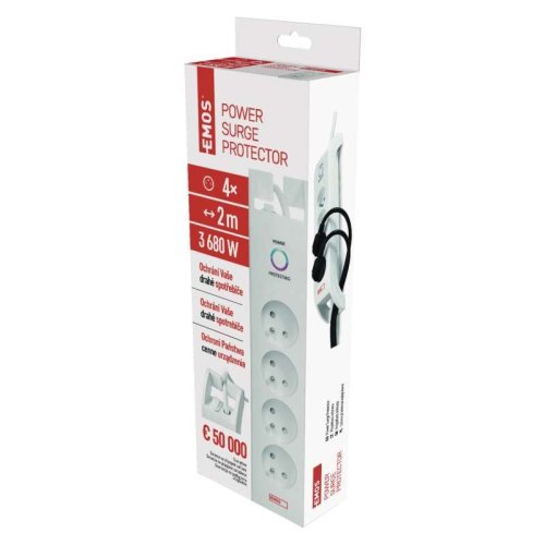 Přepěťová ochrana Emos - 4 zásuvky, 2 m, bílá