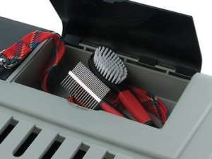 V horní části je umístěn box na chovatelské potřeby.