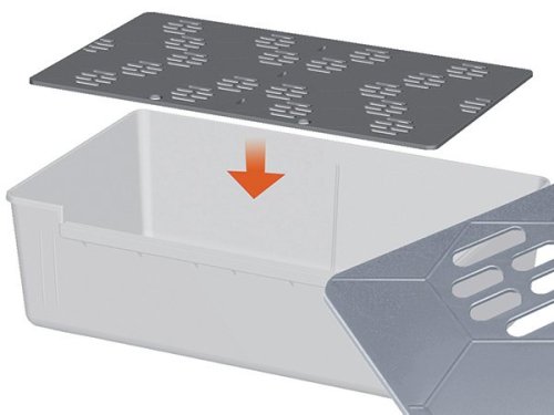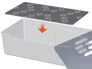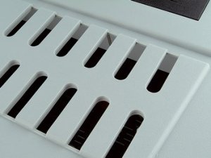 S větracími otvory ve vrchní části a dvojitou podlahou s otvory pro udržení sucha.