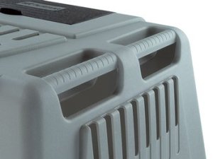 Plastový přepravní box s ocelovými dvířky a zámkem do auta.