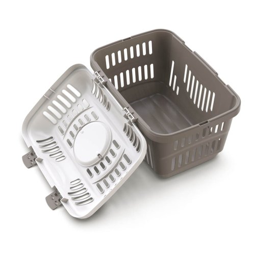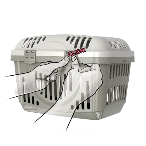 Přepravku je možné přenášet pomocí madla. Jednoduché bezpečné uzavírání díky plastovým klipsům. Ve víku i bočních stěnách větrací mřížky pro lepší cirkulaci vzduchu.