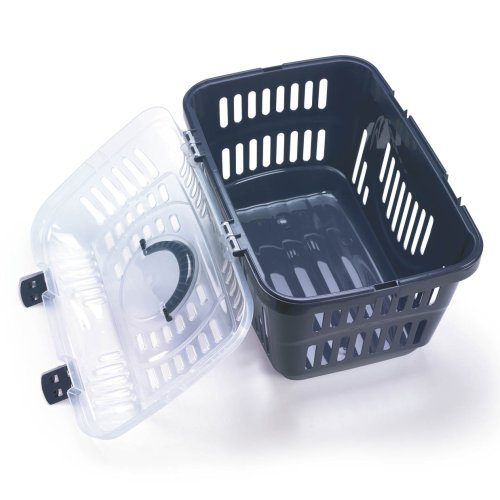 Přepravku je možné přenášet pomocí madla. Jednoduché bezpečné uzavírání díky plastovým klipsům. Ve víku i bočních stěnách větrací mřížky pro lepší cirkulaci vzduchu.