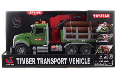 Krásný velký přepravník. Napájení na 3 AG13 baterie, které jsou součástí balení. Auto má na střeše 3 tlačítka s fukncemi-troubení a zvuk motoru, pípání při couvání a startování. Náklad je odendavácí a jeřáb je možno jedním tlačítek zvednout a druhým spustit dolů. Materiál plast,kola jsou pogumovaná.Auto je na setrvačník. Baleno v otevřené krabici. Rozměry balení cca 42x21x14 cm. Rozměry auta 36x17x13 cm. Věk 3+