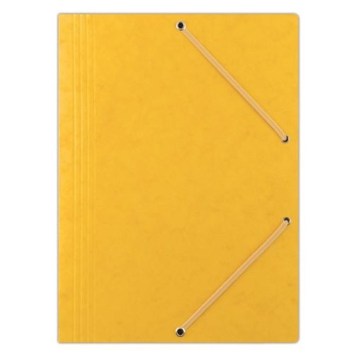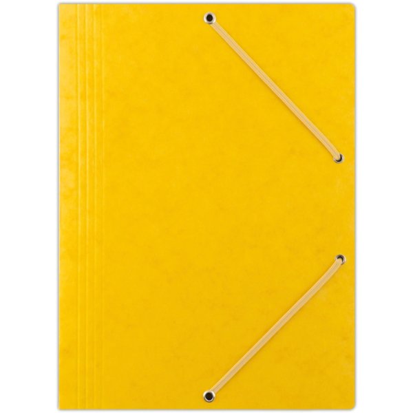 Prešpánové desky tříchlopňové Voskovaný papír 390 g/m2 Gumička v barvě desek Formát: A4 Rozměr: 235 x 319 mm Barva: žlutá