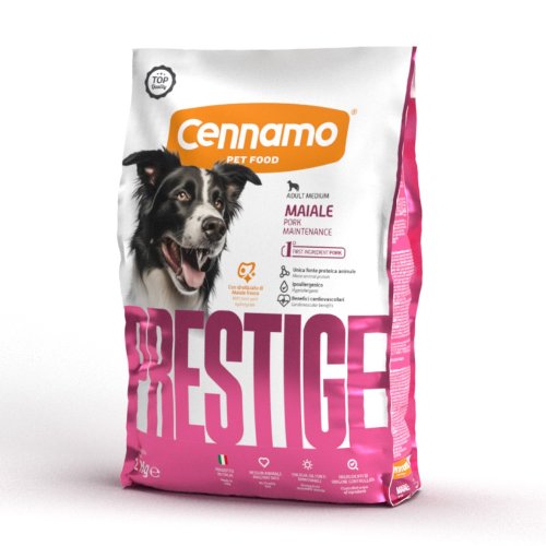 Prestige Dog Adult Maintenance Medium Vepřové s rýží a tapiokou je kompletní a vyvážené vysoce kvalitní krmivo pro dospělé psy středních plemen, které pomáhá udržovat jejich zdraví, vitalitu a optimální kondici. Receptura je připravena s vepřovým jako jediným zdrojem živočišných bílkovin, díky čemuž je krmivo velmi chutné a zároveň dobře stravitelné i pro citlivější jedince.