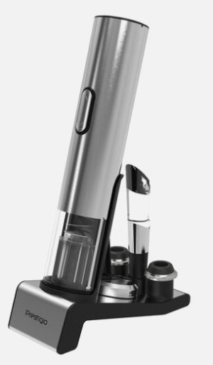V balení: Otvírák na víno, nabíjecí kabel, stručný návod k použití, záruční list, nabíjecí základna, řezačka fólie, provzdušňovač, vakuová zátka