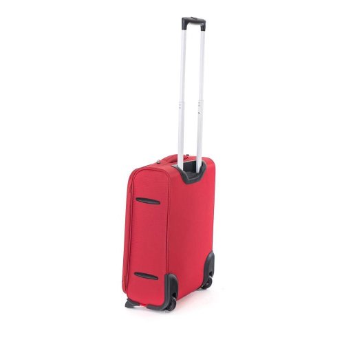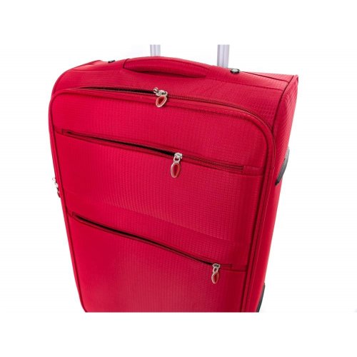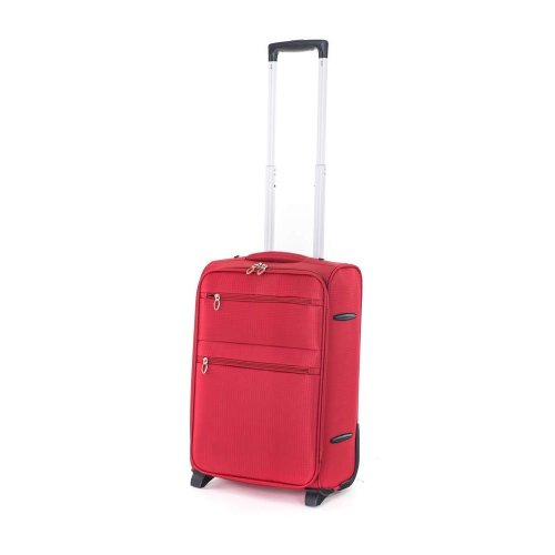 Cestovní textilní kufr TEX15 velikosti S v červené barvě, je vyrobený z textilie, což ocení především cestovatelé, pro které je důležitá nízká hmotnost zavazadla. Je opatřený 2 kolečky pro snadné přemístění zavazadla. Kufr má 2 textilní madla (boční a horní) a 1 plastové s teleskopickou rukojetí s pojistkou proti zasunutí a možností nastavitelné výšky ve více polohách. Díky vůli textilie, je prostor kufru možné drobně přizpůsobit. Ve vnitřním prostoru naleznete jistící popruhy a vnitřní kapsu pro lepší fixaci a uspořádání vašich věcí. Dále má dvě vnější kapsy pro umístění drobnějších věcí. Kufr se uzavírá na zip. Nosnost cestovního zavazadla je 10 kg. Rozměry: 50 x 35 x 20 cm a výška kufru vč. koleček 53 cm. Objem: 33 l. Váha: 2,5 kg.