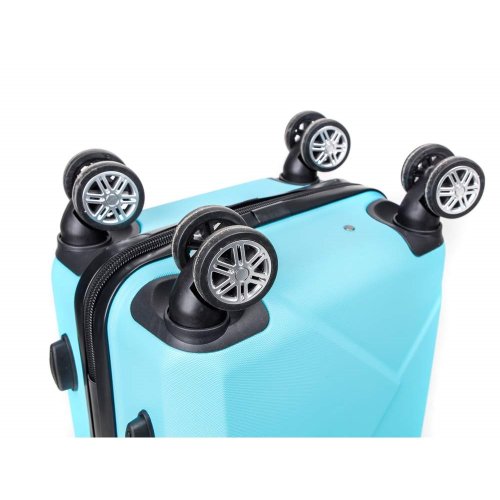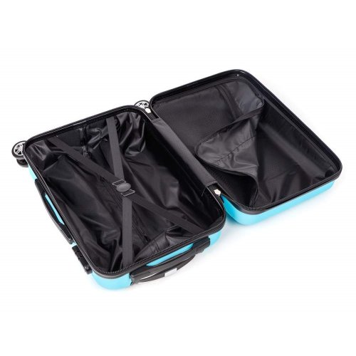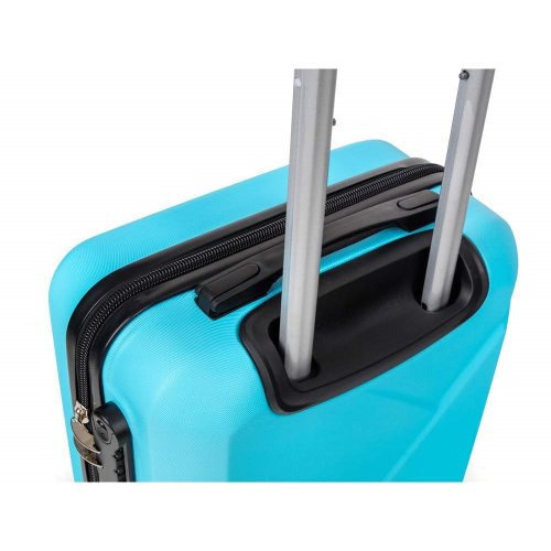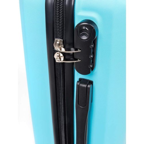 Cestovní skořepinový kufr na kolečkách ABS25 velikosti 20'' ve světle modré barvě, je vyrobený z kvalitního plastu ABS, který je odolný proti nárazu. Je opatřený 4 kolečky otočnými o 360 st., díky tomu je manipulace s kufrem velice snadná. Kufr má 3 plastová madla: boční a dvě horní, z nichž je jedno s teleskopickou rukojetí s pojistkou proti zasunutí a možností nastavitelné výšky ve více polohách. Kufr se uzavírá na zip a oba jezdce můžete spojit do kódového zámku. Vnitřní část kufru má látkovou dělící přepážku s kapsou a křížové upínání pro lepší fixaci a uspořádání vašich věcí. Nosnost cestovního zavazadla je 10 kg. Rozměry: 50 x 35 x 23 cm a výška kufru vč. koleček 56 cm. Objem: 37 l. Váha: 2,52 kg.
