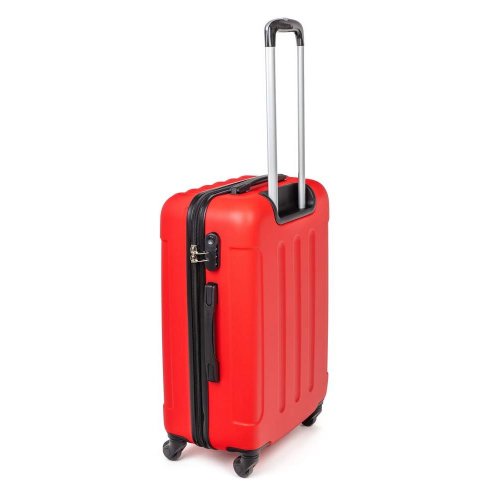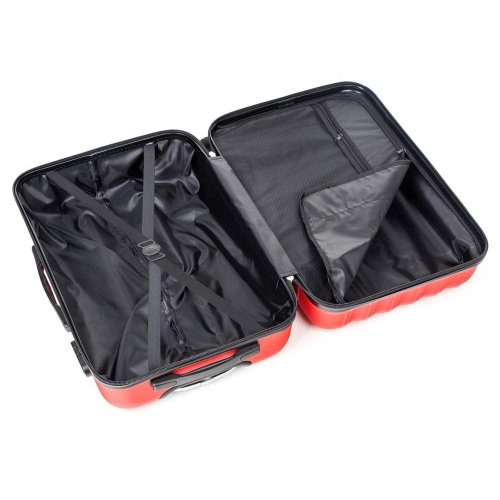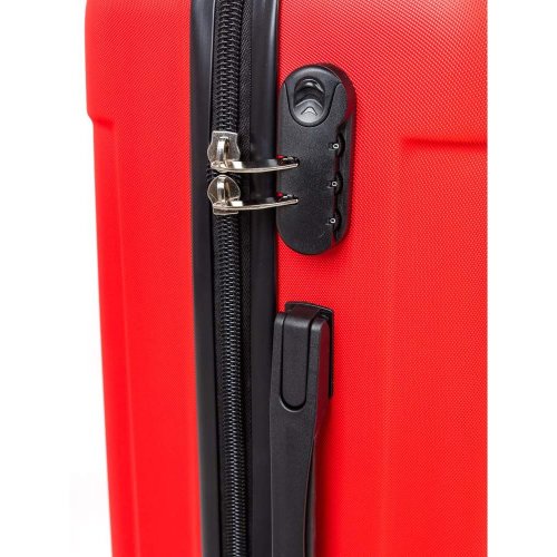 Cestovní skořepinový kufr na kolečkách ABS25 velikosti 24'' v červené barvě, je vyrobený z kvalitního plastu ABS, který je odolný proti nárazu. Je opatřený 4 kolečky otočnými o 360 st., díky tomu je manipulace s kufrem velice snadná. Kufr má 3 plastová madla: boční a dvě horní, z nichž je jedno s teleskopickou rukojetí s pojistkou proti zasunutí a možností nastavitelné výšky ve více polohách. Kufr se uzavírá na zip a oba jezdce můžete spojit do kódového zámku. Vnitřní část kufru má látkovou dělící přepážku s kapsou a křížové upínání pro lepší fixaci a uspořádání vašich věcí. Nosnost cestovního zavazadla je 18 kg. Rozměry: 59 x 41 x 26 cm a výška kufru vč. koleček 65 cm. Objem: 58 l. Váha: 3,18 kg.