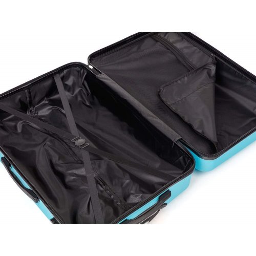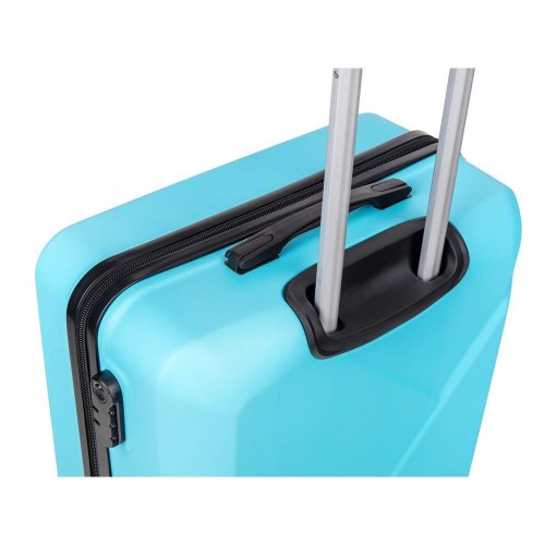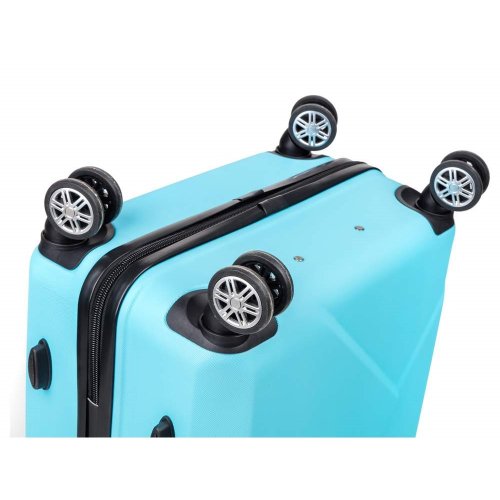 Cestovní skořepinový kufr na kolečkách ABS25 velikosti velikosti 28'' ve světle modré barvě, je vyrobený z kvalitního plastu ABS, který je odolný proti nárazu. Je opatřený 4 kolečky otočnými o 360 st., díky tomu je manipulace s kufrem velice snadná. Kufr má 3 plastová madla: boční a dvě horní, z nichž je jedno s teleskopickou rukojetí s pojistkou proti zasunutí a možností nastavitelné výšky ve více polohách. Kufr se uzavírá na zip a oba jezdce můžete spojit do kódového zámku. Vnitřní část kufru má látkovou dělící přepážku s kapsou a křížové upínání pro lepší fixaci a uspořádání vašich věcí. Nosnost cestovních zavazadel je 23 kg. Rozměry: 68 x 47 x 29 cm a výška kufru vč. koleček 75 cm. Objem: 86 l. Váha: 3,8 kg.
