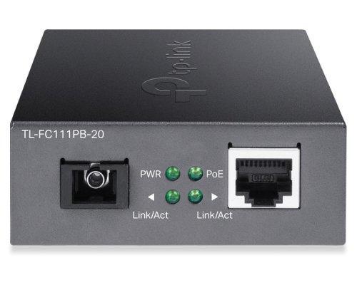 TL-FC111PB-20 je 10/100Mbit/s média konvertor s výstupem 802.3af PoE, 1 portem 10/100 Mbit/s PoE RJ45 a 1 optickým portem SC 100 Mbit/s, který umí převádět elektrické a optické signály. S optickou přenosovou vzdáleností až 20 km a výstupem 802.3af PoE byl tento média konvertor navržen pro potřeby flexibilní instalace dohledového systému přes optické vedení. Poskytuje cenově příznivou variantu při potřebě prodloužit vzdálenost existující sítě.