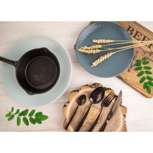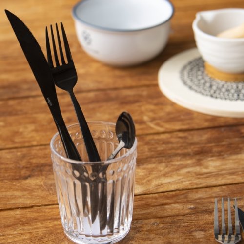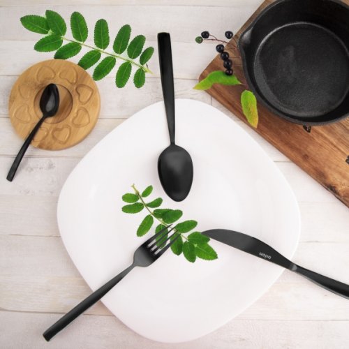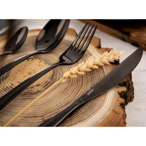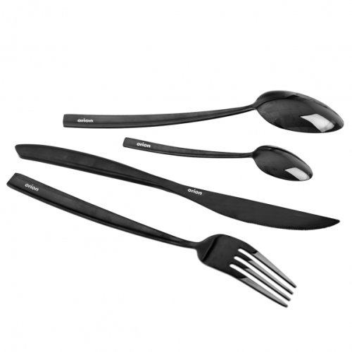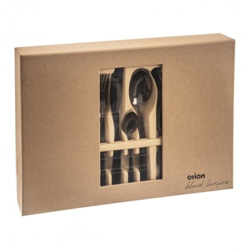 24dílná sada příborů BLACK LUXURE. Sada luxusních černých nerezových příborů v dárkovém balení BLACK LUXURE. Moderní jednoduchý tvar, atraktivní černý povrch. Kvalitní nerezová ocel, povrch PVD černý, který je vysoce odolný a zaručuje tak dlouhou životnost příborů. Lze mýt v myčce na nádobí. Sada obsahuje 6x lžička 14 cm, 6x lžíce 21 cm, 6x vidlička 21 cm a 6x nůž 24 cm. EAN 8592381164164