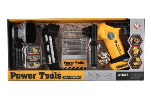 Velká sada pro malé kutily obsahuje několik doplňků jako je rotační kartáč, hřebíkovačka a výměnné nástavce vrtačky. Baterie 3x AA nejsou součástí balení. Rozměry balení 53 x 25 x 7 cm. Vhodné pro děti od 3 let.