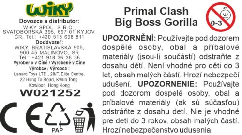 Primal Clash Big Boss Gorilla. Velikost 43 cm. Otevíratelná tlama. Pohyblivé paže a nohy.