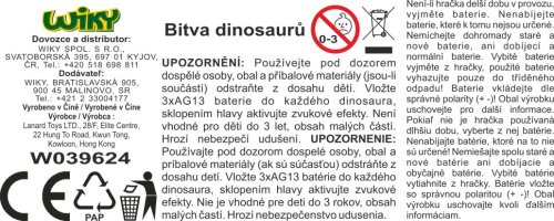 Primal Clash! Dino bitva set Carnotaurus VS Gigantosaurus. Výška figurek dinosaurů je 21 cm. Pohyblivá hlava a čelist, zvukové efekty - aktivace sklopením hlavy dinosaura. Balení obsahuje 2 dinosaury. Každý dinosaurus - 3xAG13 baterie, součástí balení (celkem 6xAG13).