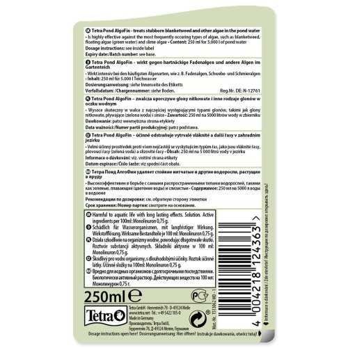 Růst řas může narušit biologickou rovnováhu v nádrži a způsobit nepříjemný vzhled. Algofin vytváří takové biologické podmínky, za kterých je zamezeno rozmnožování řas. Udržuje čistou vodu v zahradních nádržích.
