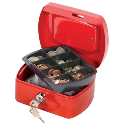 Vyrobena z lakované oceli s povrchem odolným proti poškrábání Každá pokladna je opatřena zámkovou vložkou ke které dodáváme 2 klíče Součástí balení je vyjímatelný mincovník s 8 oddíly Plastová rukojeť …