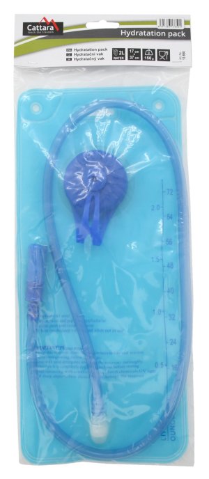 Pitný vak Cattara naplníte po odšroubování víka. Na stupnici vidíte, kolik vody se v něm nachází. Rozměry příslušenství se hodí pro použití v běžných batozích s možností upnutí hydratačních vaků.