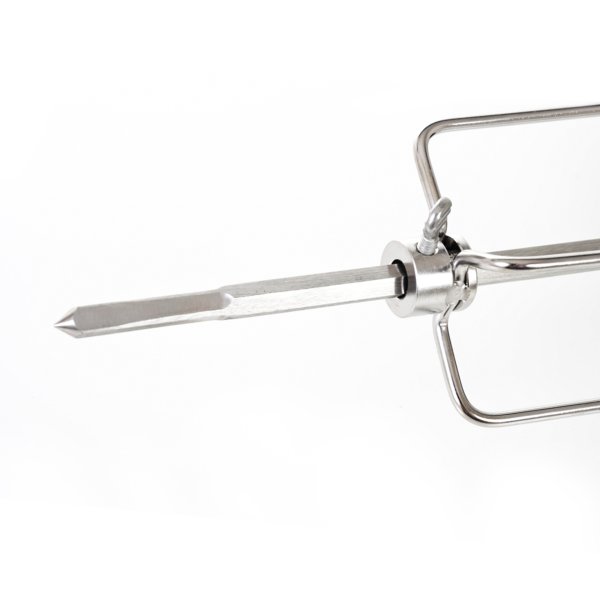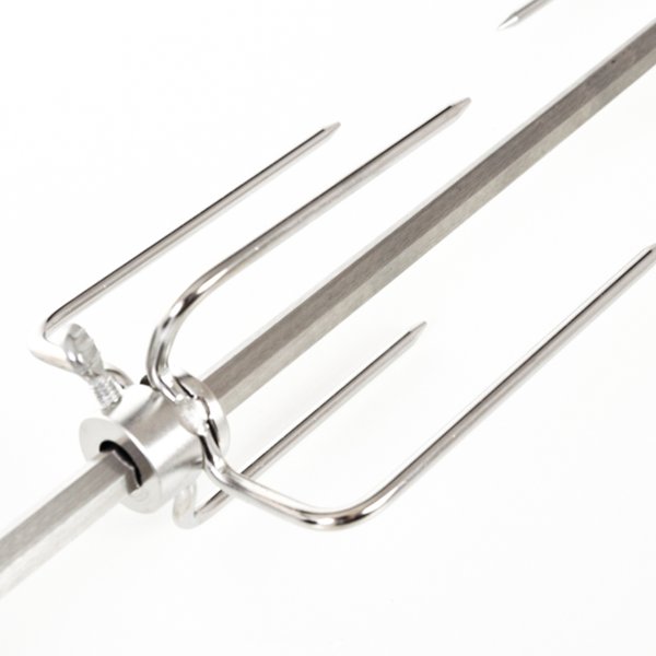 Grilovací jehla s motorem je vyrobena z nerezové oceli a z obou stran je opatřena čtyřmi jehlicemi s aretačními šrouby, díky kterým si můžete jehlice nastavit podle vlastní potřeby.