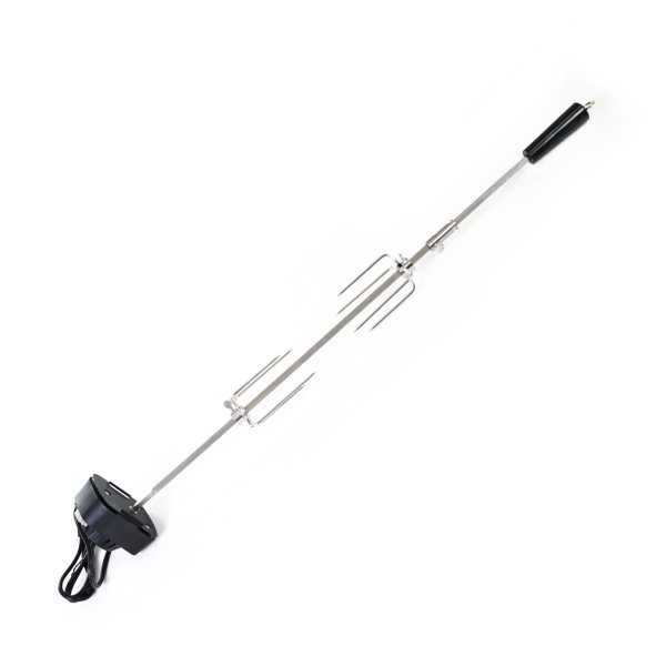Z jedné strany je jehla opatřena odnímatelným plastovým držadlem, na kterém je praktické očko pro uchycení. Z druhé strany se nachází motorek v plastovém krytu, na kterém je umístěno tlačítko na zapínání / vypínání. Motorek s napětím 230 V jednoduše zapojíte do elektřiny pomocí kabelu v délce cca 125 cm. Motorek s jehlou otáčí rychlostí asi 2 otáčky za minutu, aby se připravovaný pokrm nepřipékal, ale pekl se rovnoměrně.