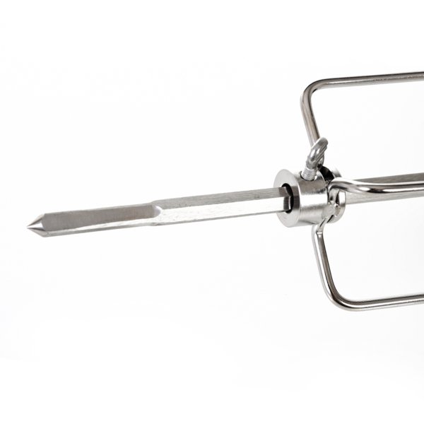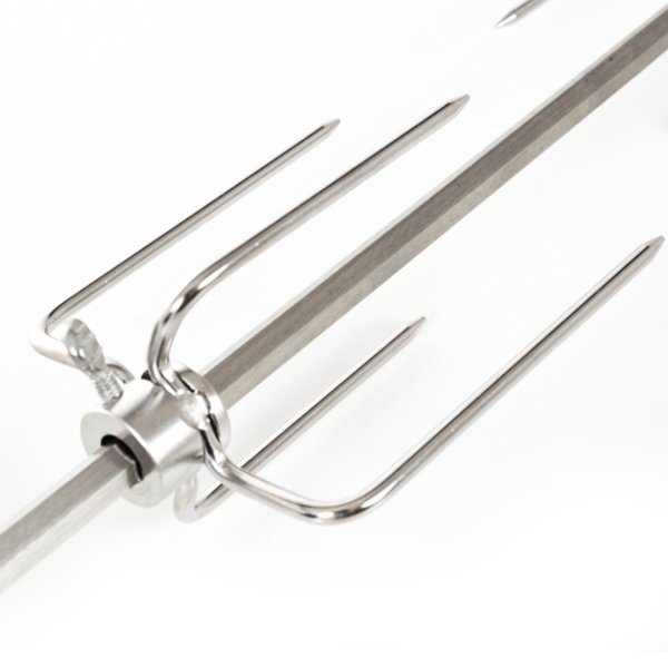 Grilovací jehla s motorem je vyrobena z nerezové oceli a z obou stran je opatřena čtyřmi jehlicemi s aretačními šrouby, díky kterým si můžete jehlice nastavit podle vlastní potřeby.