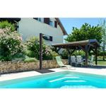 Rošt vytváří pevnou a stabilní základnu pod solární sprchou, díky které voda může volně odtékat mezi lamelami a vy tak nestojíte v kaluži ani v blátě. Sprchování je tak nejen pohodlnější, ale také hygieničtější. Povrch v dekoru dřevěných prken působí přirozeně a elegantně, proto rošt skvěle zapadne do prostředí zahrady, terasy i okolí bazénu. Kvalitní plastový materiál je navíc odolný vůči vlhkosti, slunci i běžnému opotřebení, snadno se udržuje a je vhodný pro dlouhodobé venkovní používání.